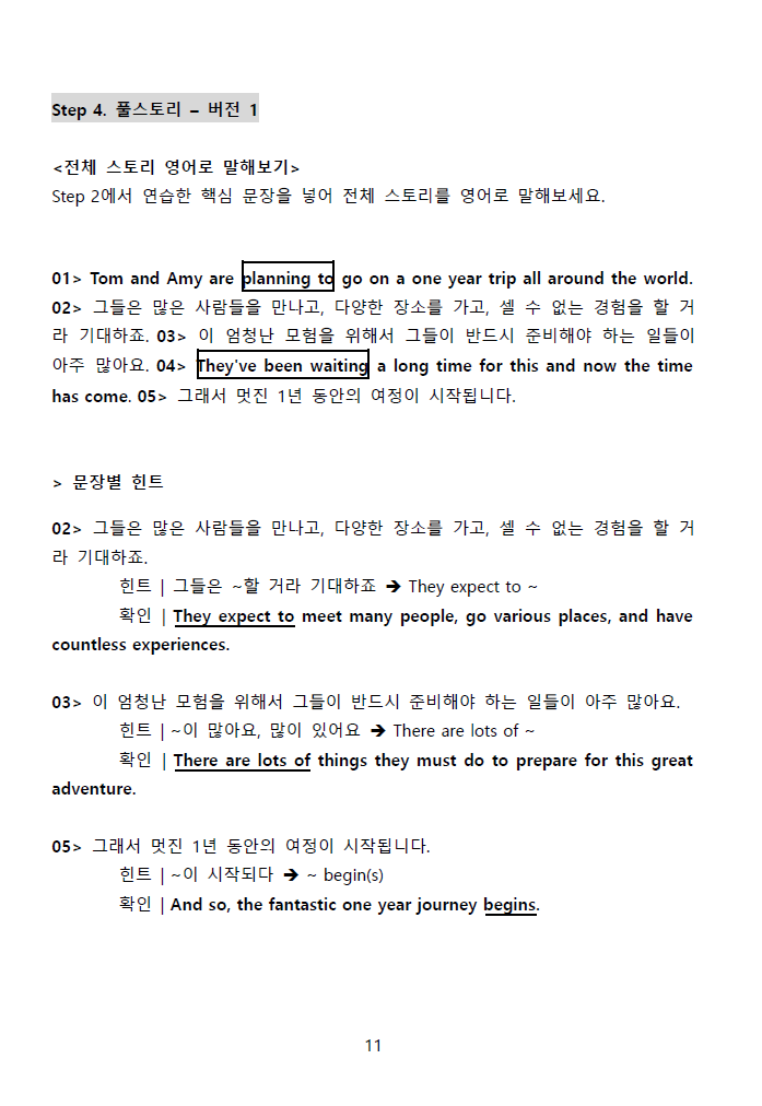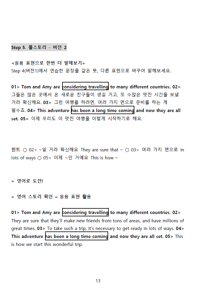 2) 스토리 내용은 동일한데, 어감이 다른 2가지 스타일로 영어를 비교하면 싶다면?