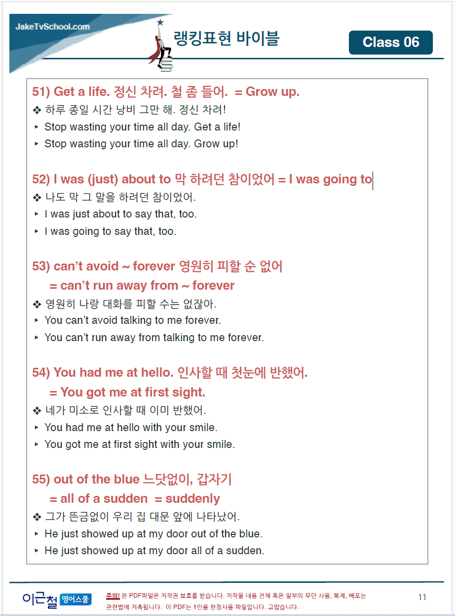 실제 교재 6강 11쪽: 구어체 랭킹 표현