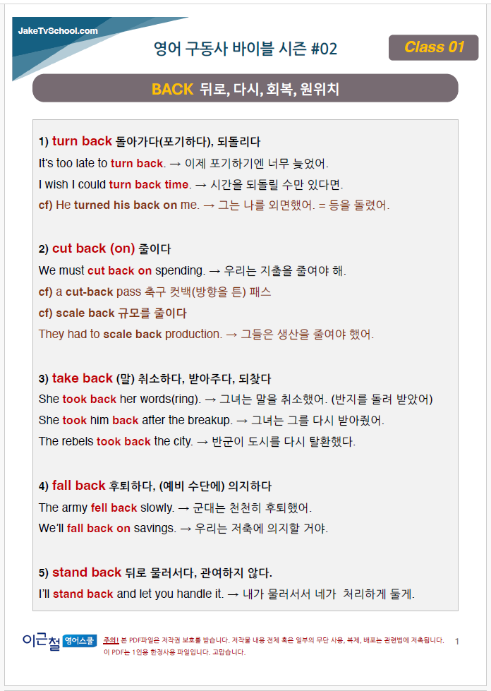 - back, through, together, with, about... 같은 단어가 나오면 그 뜻을 추측해 보는 자신감이 생김